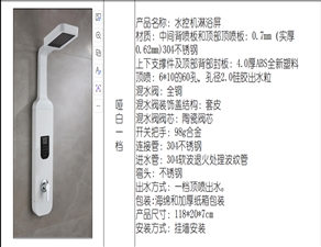 產(chǎn)品名稱(chēng):一體式淋浴屏 高端花灑 [ ]