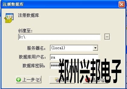 四、選擇存放數據庫的路徑后,選擇本地服務器并且輸入數據庫的用戶名和密碼。點擊‘注冊’出現如圖五所示: