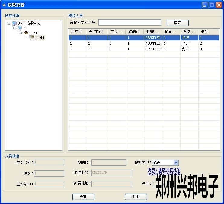 3.單擊【更新】即可改變該人員的開門權限.