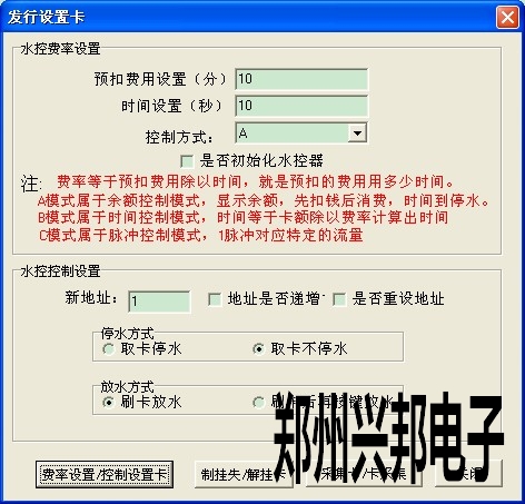 注:簡版水控機用費率設置卡修改費率,聯網水控既能用軟件設置費率,也能用管理卡設置費率