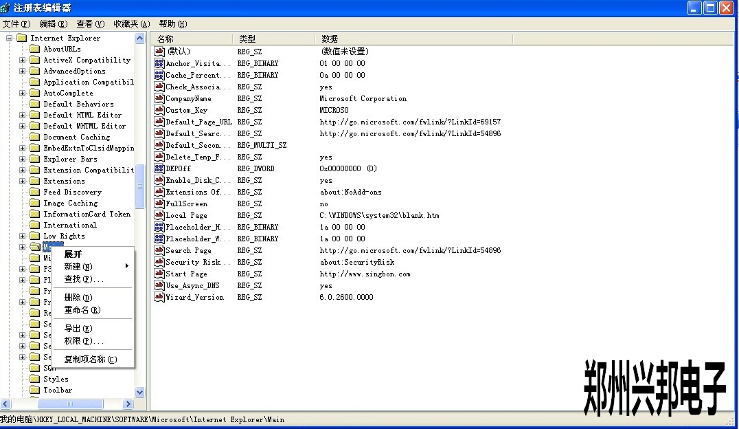 2. 在彈出來的“注冊表編輯器”界面上,選擇HEEY_LOCAL_MACHINE\SOFTWARE\Microsoft\Internet Explorer\Main