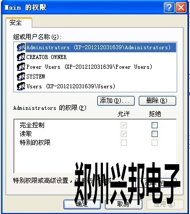 3. 選中Main右擊,選擇“權限”選項,在彈出來的“Main的權限”界面下,選中組或用戶名稱下內容,在“完全控制”選項中,在“允許”下方打“V "