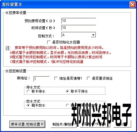 是否初始化水控器,該復(fù)選框中對管理卡來說的。如果在設(shè)置管理卡的時候選中該復(fù)選框,使用管理卡設(shè)置預(yù)扣費(fèi)率的同時也初始化了水控機(jī)上的所有消費(fèi)數(shù)據(jù)。