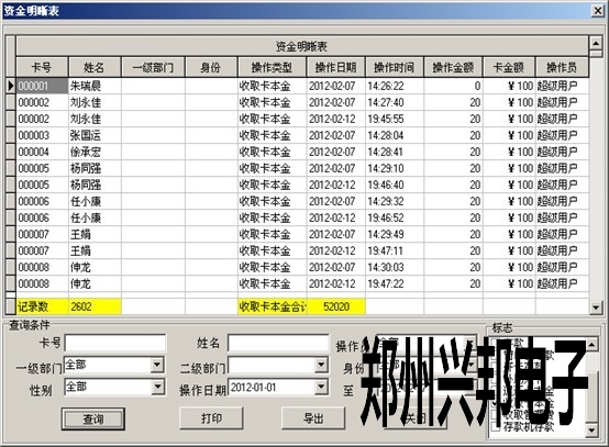 3.數據管理-資金明細表中可以根據標志‘收取卡本金’查詢出收取卡本金合計:52020元,189954.19-52020=137934.19元