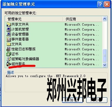 把光標點一下組件服務,點添加,然后關閉,如下圖