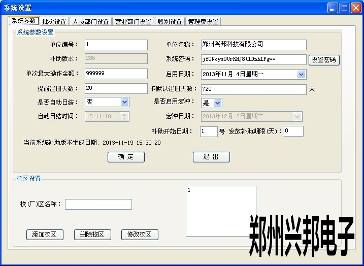 Ø 校(廠)區設置:添加校區,刪除校區,修改校區