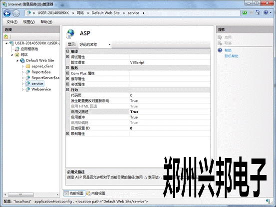 IIS管理器中,展開本地計算機,展開網站,展開Default Web Site,點擊service,雙擊右邊目錄里的asp,啟用父路徑。