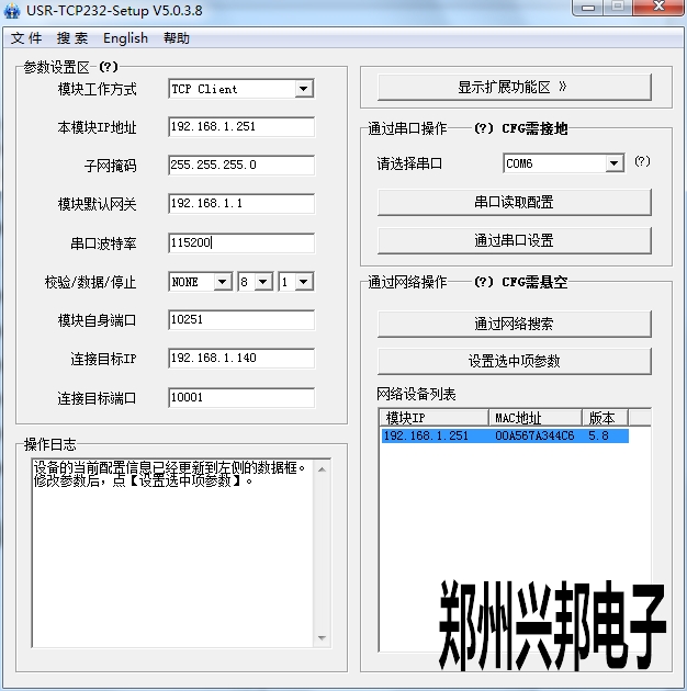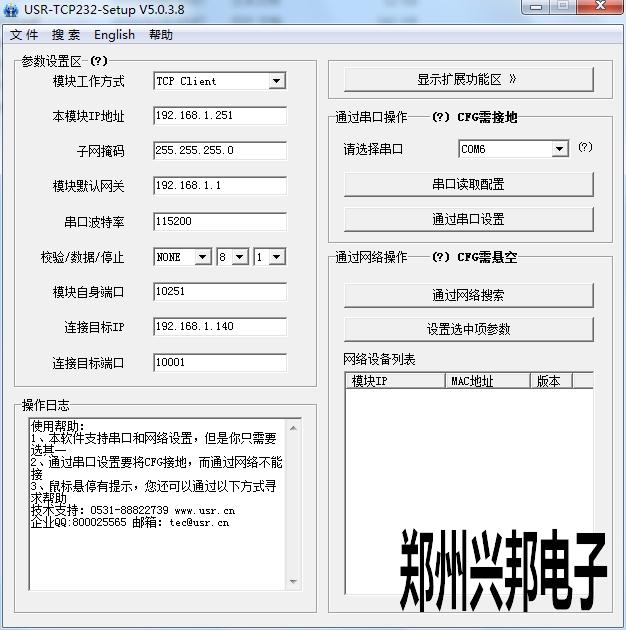 5、模塊自身端口取所填本地ip地址的最后一空的數字,比如所填IP為192.168.1.251那么該端口就是10251。