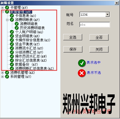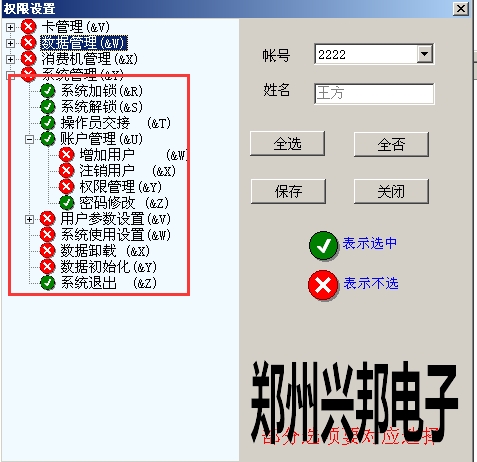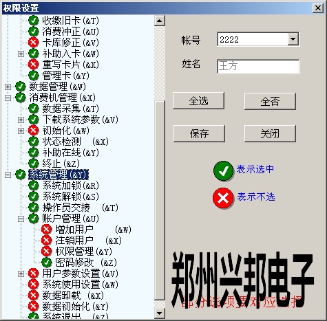 售飯水控系統軟件中關于操作人員權限分配的說明