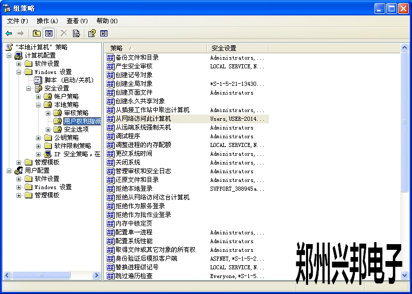 選擇“計算機(jī)配置” →“windows設(shè)置” →安全設(shè)置→“本地策略” →“用戶權(quán)利指派”打開
