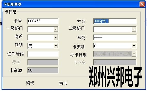 2、先把卡放IC卡讀卡器上,讀卡,出現(xiàn)卡信息后,直接修改卡信息。(注:卡號(hào)是不能修改的。卡號(hào)只有在發(fā)行的時(shí)候來(lái)修改,一但發(fā)行就不能修改了。)
