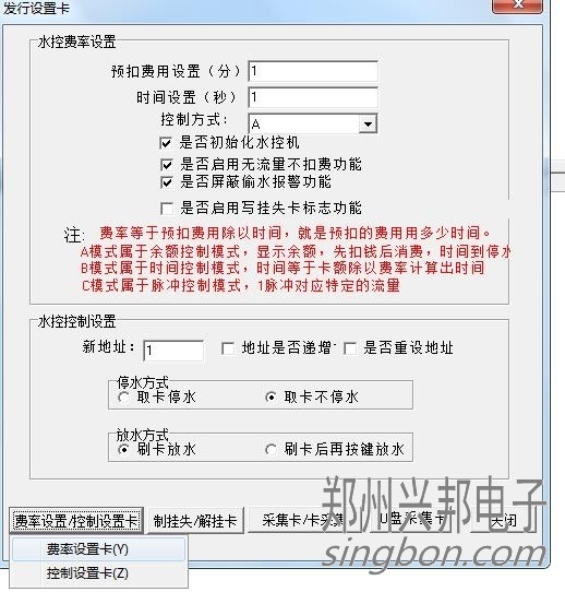4、最后點擊“費率設(shè)置/控制設(shè)置卡”按鈕,分別制一張費率設(shè)置卡,控制設(shè)置卡。點擊確定完成就可以了。