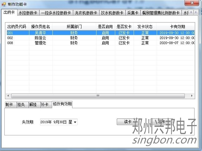 4,先讀卡,然后修改一下有點效期,再寫卡,這樣出納卡的有效期就修改成功了。