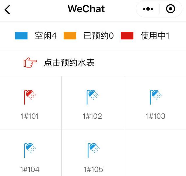 第二步:點(diǎn)擊“預(yù)約”功能,選擇想要使用的水控器進(jìn)行預(yù)約,獲取預(yù)約碼及時(shí)間。